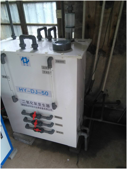 2016年8月,岳陽華容縣團洲鎮(zhèn)自來水廠安裝使用湖南東環(huán)環(huán)??萍加邢薰?/a>生產(chǎn)的DHD系列電解法二氧經(jīng)氯發(fā)生器投入運行。